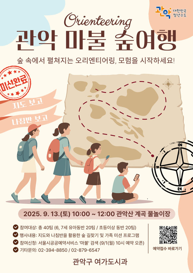 모집 인원은 관악구민 우선으로 총 40가구이며, ▲6~7세 유아 동반 가족 20팀 ▲초등학생 동반 가족 20팀이 선착순으로 신청할 수 있다.