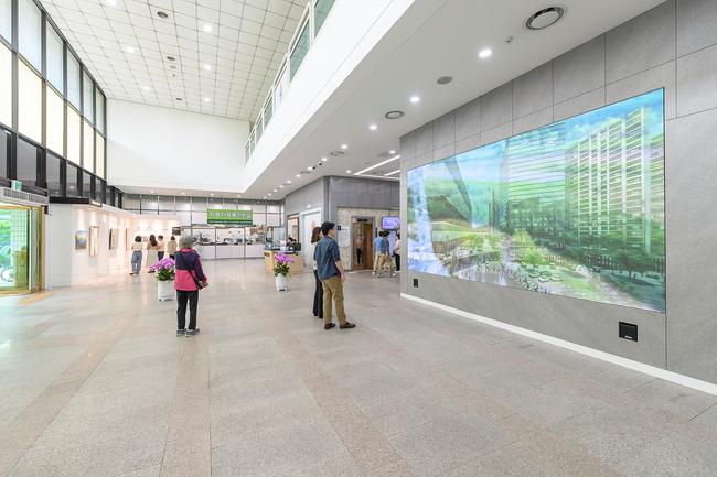 새롭게 조성된 로비에는 가로 4.5m, 세로 2.4m의 대형 LED 디스플레이 `미디어월`을 설치해 다양한 홍보 영상과 미디어아트를 실시간으로 표출하고, `양천예술인갤러리` 공간을 마련해 지역에서 활동하는 예술작가의 작품을 전시하고 있다.