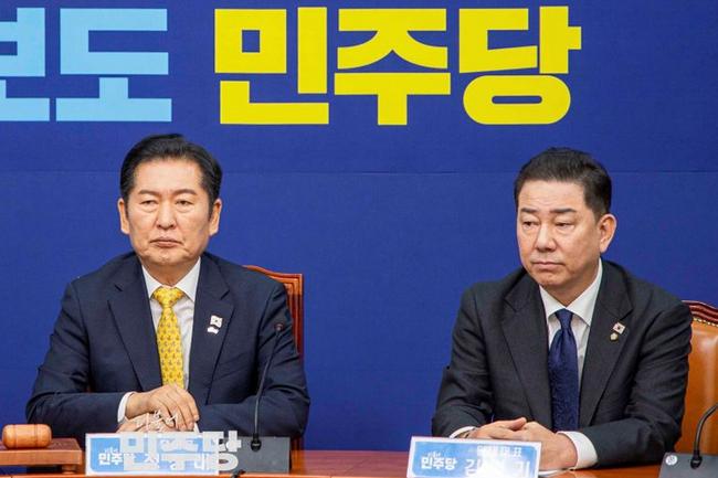 김병기 원내대표도 “정치검사들의 반란에 철저히 책임을 묻겠다”며 “항명 검사장 전원을 즉시 보직 해임하고 징계 절차를 개시하라”고 법무부에 요구했다. 그는 “항명 검사들은 국가공무원법에 따라 해임 또는 파면돼야 한다”며 “사실상 검사특권법인 검사징계법을 폐지하겠다”고 밝혔다.