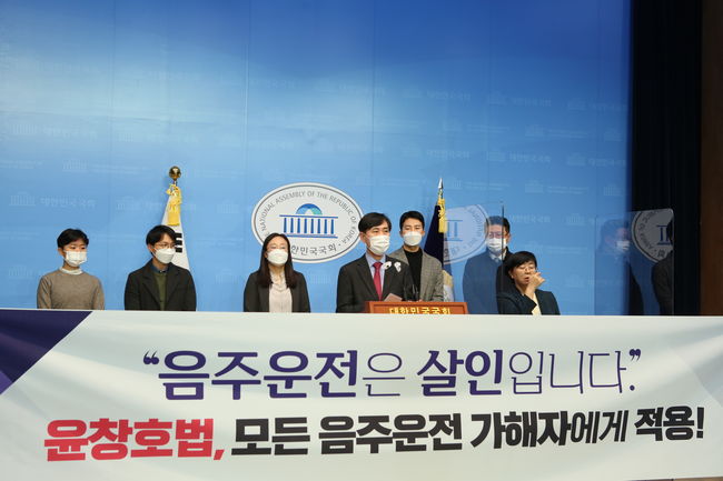 그는 이날 음주운전 피해자 가족 및 친구들과 국회 소통관에서 공동 기자회견을 열고 "모호한 규정 대신 도로교통법상 음주운전 기준 `정상적인 운전이 곤란한 상태`를 적용해 법 적용의 형평성과 음주운전 근절 노력 제고해야 한다"고 주장했다.