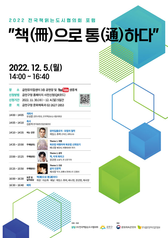 금천구는 12월 5일 오후 2시 금천뮤지컬센터에서 ‘2022 전국책읽는도시협의회 포럼’을 개최한다고 밝혔다.