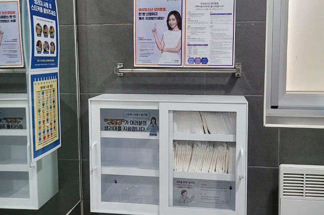 2019년 ‘여성청소년 생리용품 보편지급’ 조례를 제정한 구로구는 관내 중·고등학교, 청소년시설 등 총 28개 기관에 생리대 보관함 177여개를 설치했다.