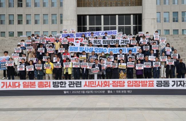 오는 7일로 예정된 기시다 후미오 일본 총리의 방한을 앞두고 야당과 시민단체들이 "급조된 한일정상회담에 대한 국민의 우려가 크다"며 윤석열 정부의 굴욕외교 중단을 촉구했다.