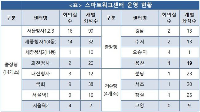 이번 용산센터 개소로 전국의 정부 스마트워크센터는 총 18개소가 운영된다. 2010년 분당점과 도봉점을 개소한 이래로 현재 정부서울청사, 국회, 서울역 등에서 스마트워크센터가 운영 중이다.