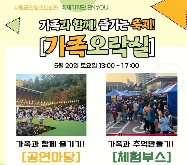 이번 청소년 축제 ‘가족오락실’은 가정의 달을 맞아 참여 대상을 청소년에서 가족까지로 확대하고, 가족 간의 이해와 유대를 강화하는 ‘가족오락실’을 주제로 진행된다. 그간 체험 부스와 공연으로 구성했던 어울림마당에 가족 참여형 이벤트를 더해 주민 모두가 어우러질 수 있는 장이 될 예정이다.