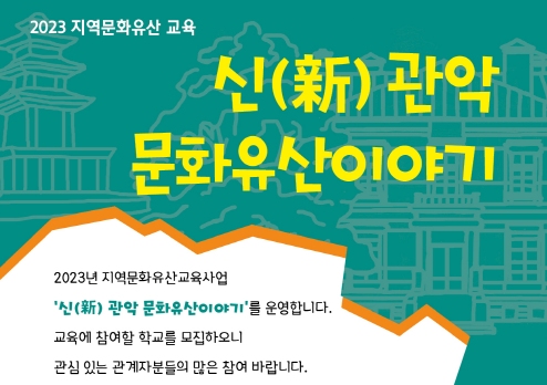 관악구가 문화재청에서 시행하는 ‘지역문화유산교육 공모사업’에 선정되어, 학교로 찾아가는 ‘신(新) 관악문화유산 이야기’를 운영한다고 밝혔다.