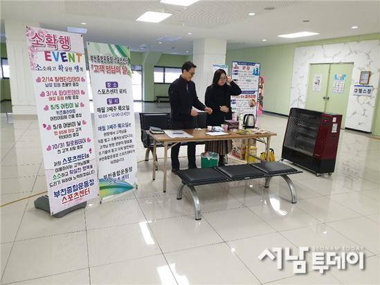 ▲ 부천도시공사 종합운동장 스호츠센터 로비에서 진행중인 소확행 이벤트