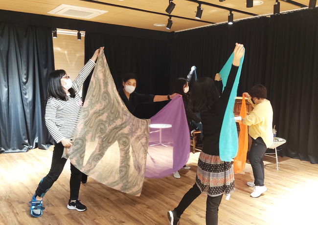 가족 단위 대상으로 하는 ‘천으로 놀다’는 가족 이야기를 소재로 인형극을 함께 만들면서 세대 간 친밀감을 형성하고, 갈등을 해소하는 과정이다.
