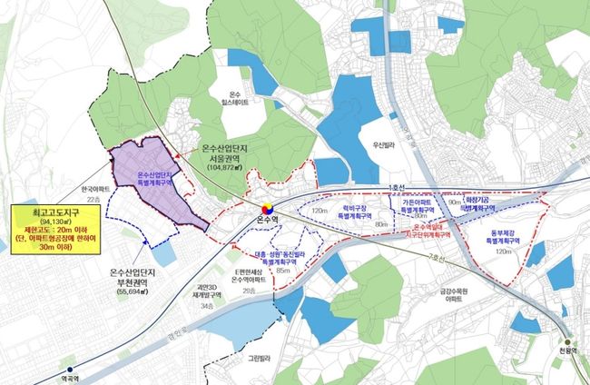 최고고도지구 폐지 대상은 구로구 부일로1나길 28(온수동 100-64번지) 일대 9만4,130㎡ 면적이다.