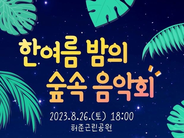 음악회는 오는 26일 오후 6시~9시 허준근린공원 광장에서 개최, 자연에서 펼쳐지는 음악 공연은 다양한 연령층의 관람객들에게 힐링과 추억의 시간을 선사할 예정이다.