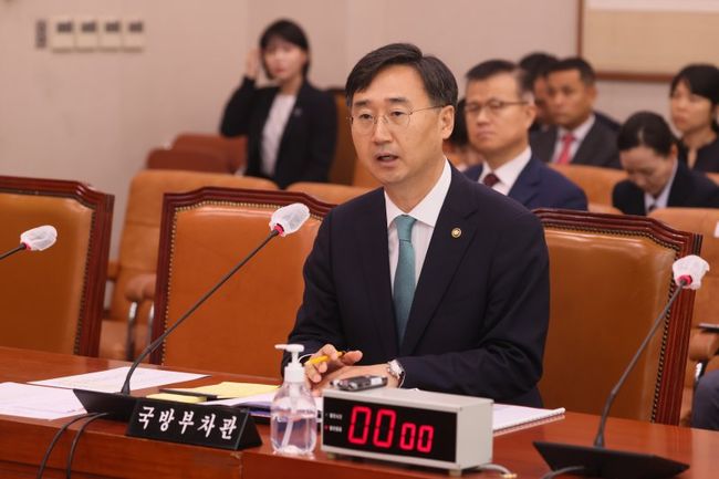 신범철 국방부 차관이 21일 오전 서울 여의도 국회에서 열린 법제사법위원회 전체회의에서 고 채수근 상병 사망 관련 의원들의 질의에 답하고 있다.