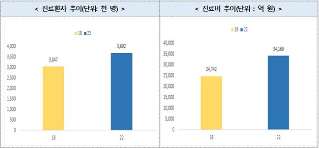 고혈압에 이어 단일상병 기준 진료비 지출이 두 번째로 높으며, 진료 환자 수와 진료비 등 사회경제적 비용이 지속적으로 증가하고 있다.