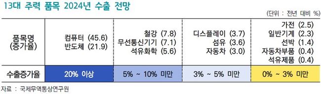 품목별로는우리나라의 13대 주력 품목 수출이 모두 증가세로 전환될 전망이다.