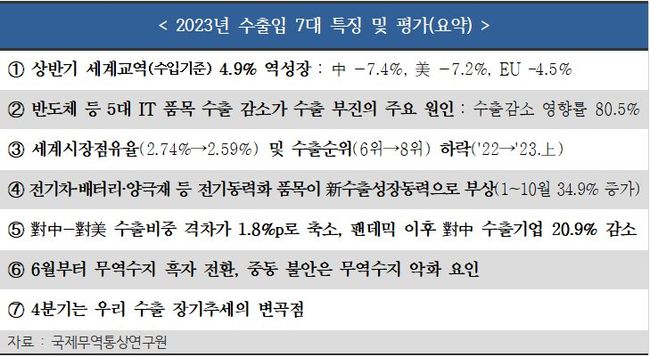 한국무역협회(KITA) 국제무역통상연구원은 30일 ‘2023년 수출입 평가 및 2024년 전망’ 보고서를 발표했다.