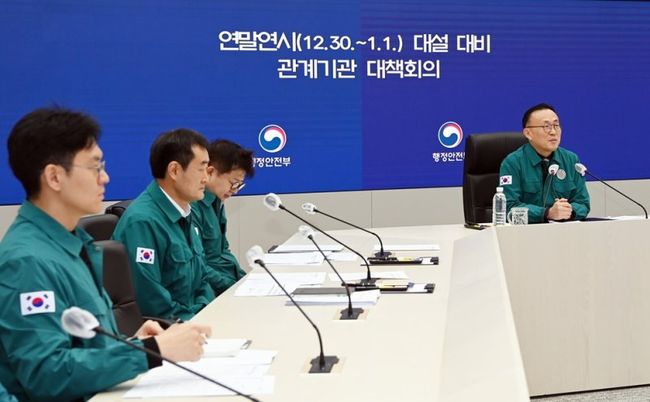 행정안전부는 30일과 31일 전국적 강수와 중부지방 강설이 예상됨에 따라 29일 오전 10시 이한경 재난안전관리본부장 주재로 7개 중앙부처와 유관기관, 17개 시·도와 대책회의를 개최하고 중점 관리사항과 기관별 대처계획 등을 논의했다.