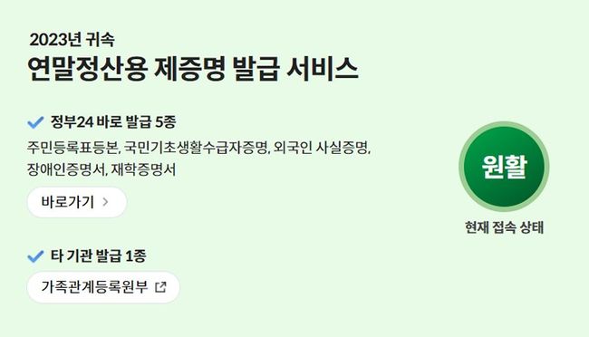 채수경 행정서비스통합추진단장은 “2023년 귀속 연말정산을 해야 하는 국민이 정부24를 통해 보다 편리하게 연말정산용 증명서를 발급받을 수 있도록 준비했다”며, “앞으로도 정부24를 통해 국민생활에 밀접한 서비스를 편리하게 제공하도록 최선을 다하겠다”고 밝혔다.
