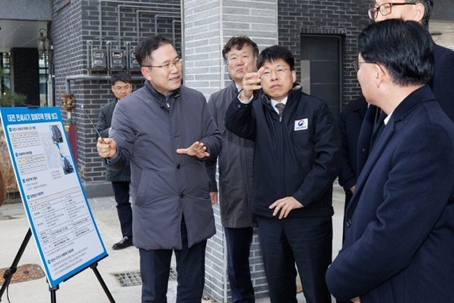 진현환 국토교통부 1차관은 7일 오후 3시 대전광역시 유득원 행정부시장, 박필우 도시주택국장을 비롯한 지자체 관계자들과 함께 대전 문지동에 위치한 전세피해 현장을 둘러보고 대전시 전세피해지원센터(지원센터)를 방문했다.
