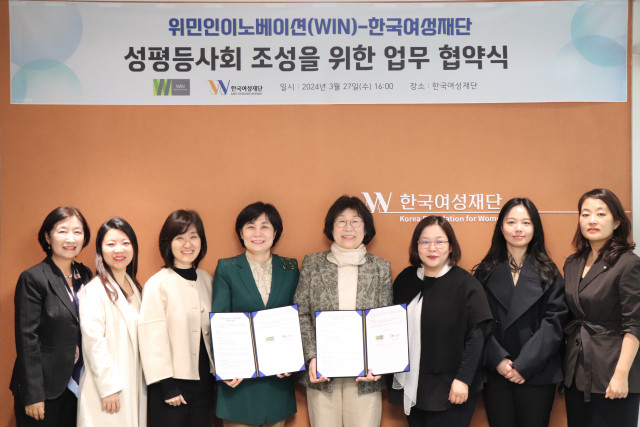 한국여성재단(이사장 장필화)은 지난 3월 27일 위민인이노베이션(회장 서지희)과 다양한 여성이 잠재력을 펼칠 수 있는 성평등 사회를 위한 상호 협력을 다지는 업무 협약식을 진행했다.