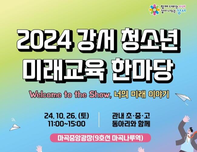구는 26일 오전 11시부터 오후 3시까지 마곡중앙광장에서 `2024 강서 청소년 미래교육 한마당`을 개최한다고 밝혔다.