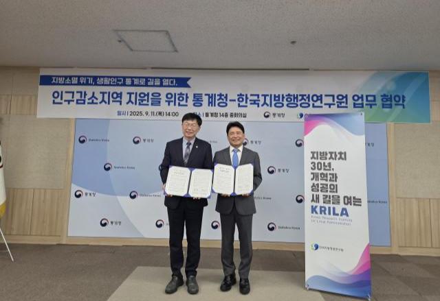 통계청(청장 안형준)과 한국지방행정연구원(원장 육동일)은 9월 11일(목) ‘인구감소지역 정책 지원을 위한 업무협약’을 체결했다.