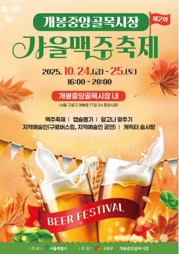 특히 오는 24일과 25일에는 개봉중앙 골목형상점가에서 ‘가을맥주축제’가 열릴 예정이다. 축제 기간에는 상점가를 찾는 고객을 대상으로 맥주부스와 식사공간이 운영되고, 달고나 만들기 등 체험형 이벤트와 거리문화공연이 함께 진행된다. 주민과 상인이 어우러지는 현장 분위기를 통해 상권 이용률 제고와 지역경제 활성화를 동시에 기대할 수 있다.