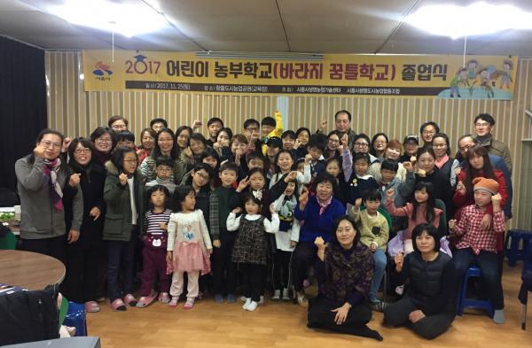 시흥시는 텃밭수업 참여로 가족의 따뜻함과 생명농업의 소중함을 배우고 정서적 안정을 찾을 수 있었던 <2017 어린이 농부학교> 졸업식을 지난 25일 함줄도시농업공원 교육장에서 진행했다.
