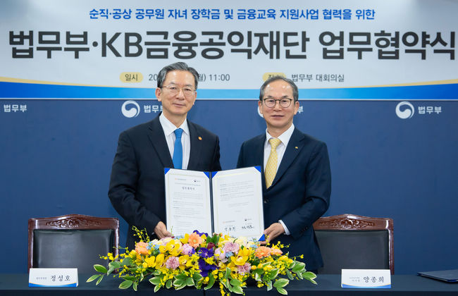 법무부와 KB금융공익재단이 순직·공상 공무원 자녀를 위한 장학금과 금융교육 지원에 나선다.