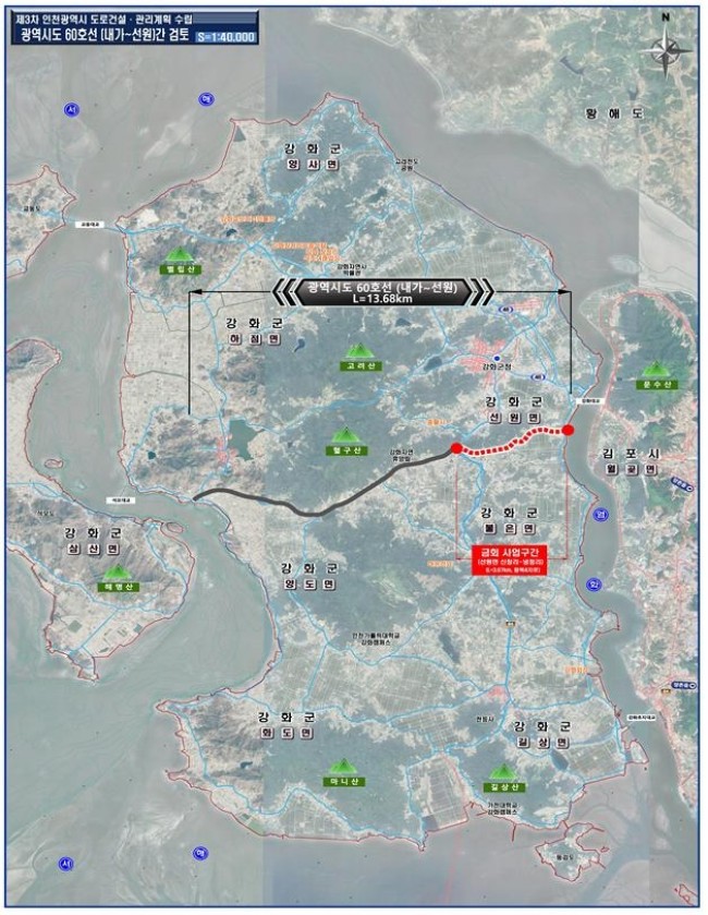 강화군(군수 박용철)은 인천광역시와 긴밀한 협력을 통해 `계양∼강화 고속도로`와 연계한 `광역시도 60호선 도로건설사업`의 선원면 구간 건설을 본격 추진한다고 밝혔다.