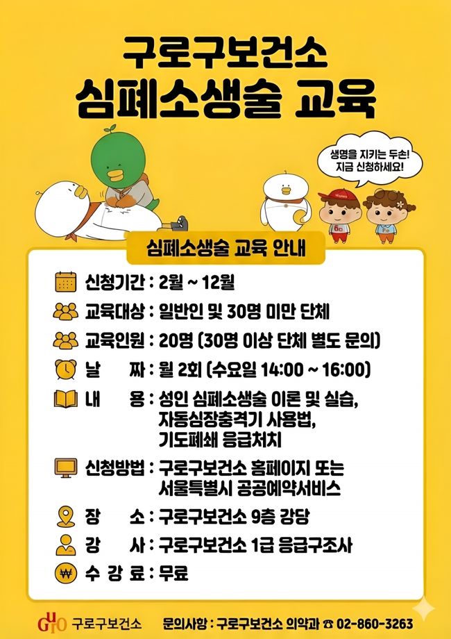 구로구보건소 심폐소생술 교육 홍보 안내문.