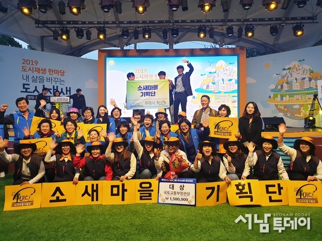 소새마을기획단 등이 2019 도시재생 주민참여 프로그램 우수사례 경진대회에서 ‘대상’을 받은 후 기념촬영을 하고 있다.