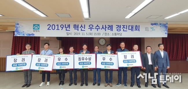 부천시 혁신 우수사례 경진대회 수상자들이 단체 기념촬영을 하고 있다. (사진=부천시)