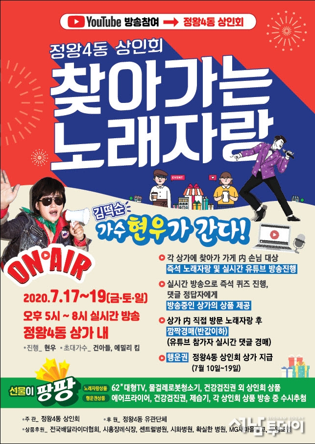 시흥시 정왕4동이 오는 17일부터 3일간 유튜브를 통해 '정왕4동 상인회 찾아가는 노래자랑'을 개최한다.